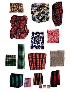 Scarves in many prints and plaids to fill in a jacket or coat neckline, or as an accent to a plain outfit